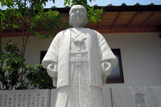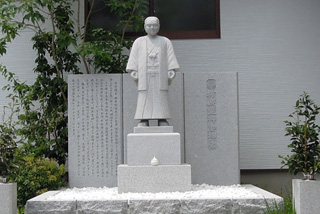 この柿原霊神ご神像は、下の病気に苦しむ、より多くの人々におかげをいただいてもらいたく、日吉山の墓石からご分霊を奉遷して、ここ今治宗忠神社の斎庭に永遠に奉斎したものです。